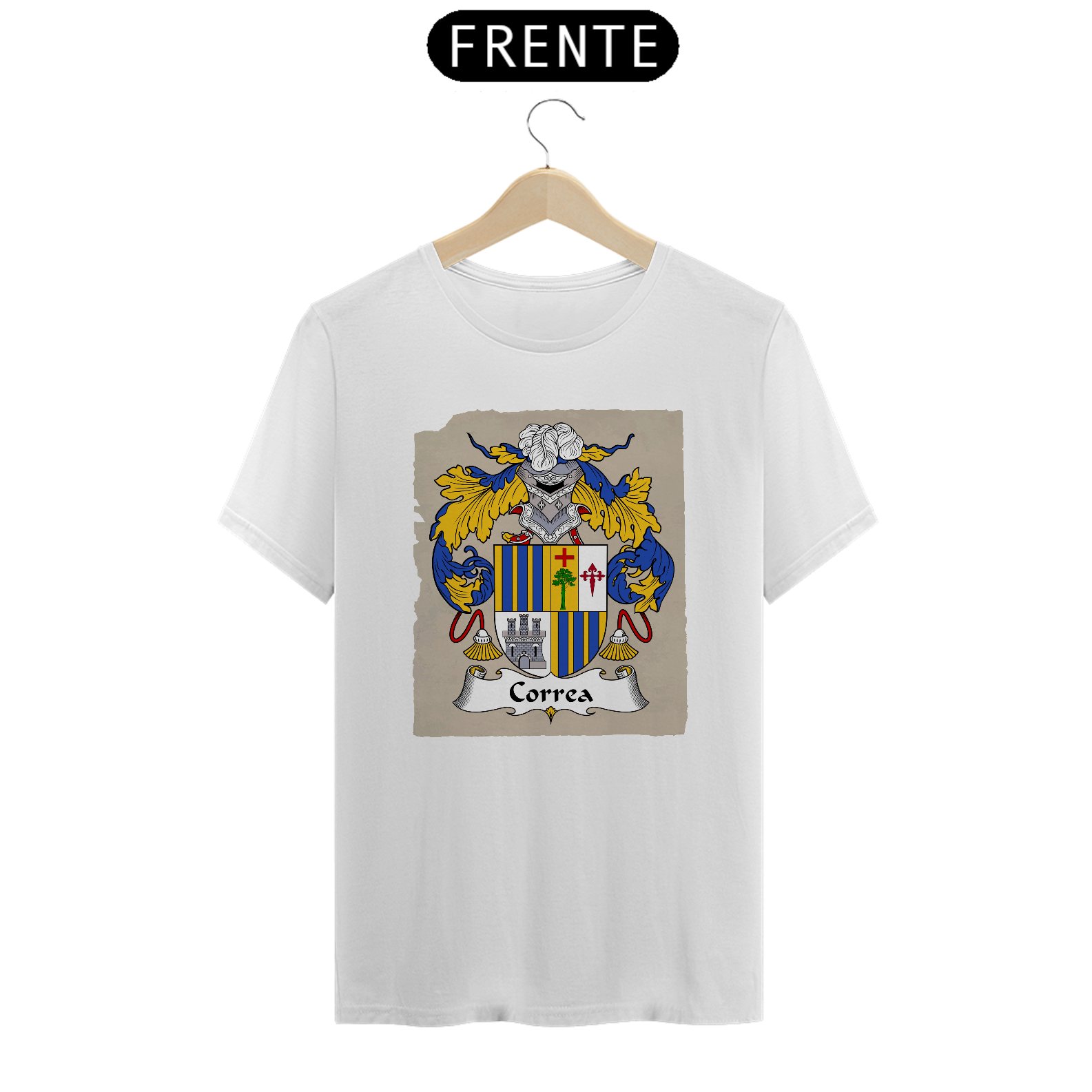 Mostre suas raízes com estilo! A Camiseta Brasão Família Correa é perfeita para quem valoriza a história da família e quer carregar consigo um símbolo de honra e pertencimento. Feita com tecido macio, leve e durável, essa peça une conforto e identidade. Ideal para encontros de família, eventos especiais ou para o dia a dia