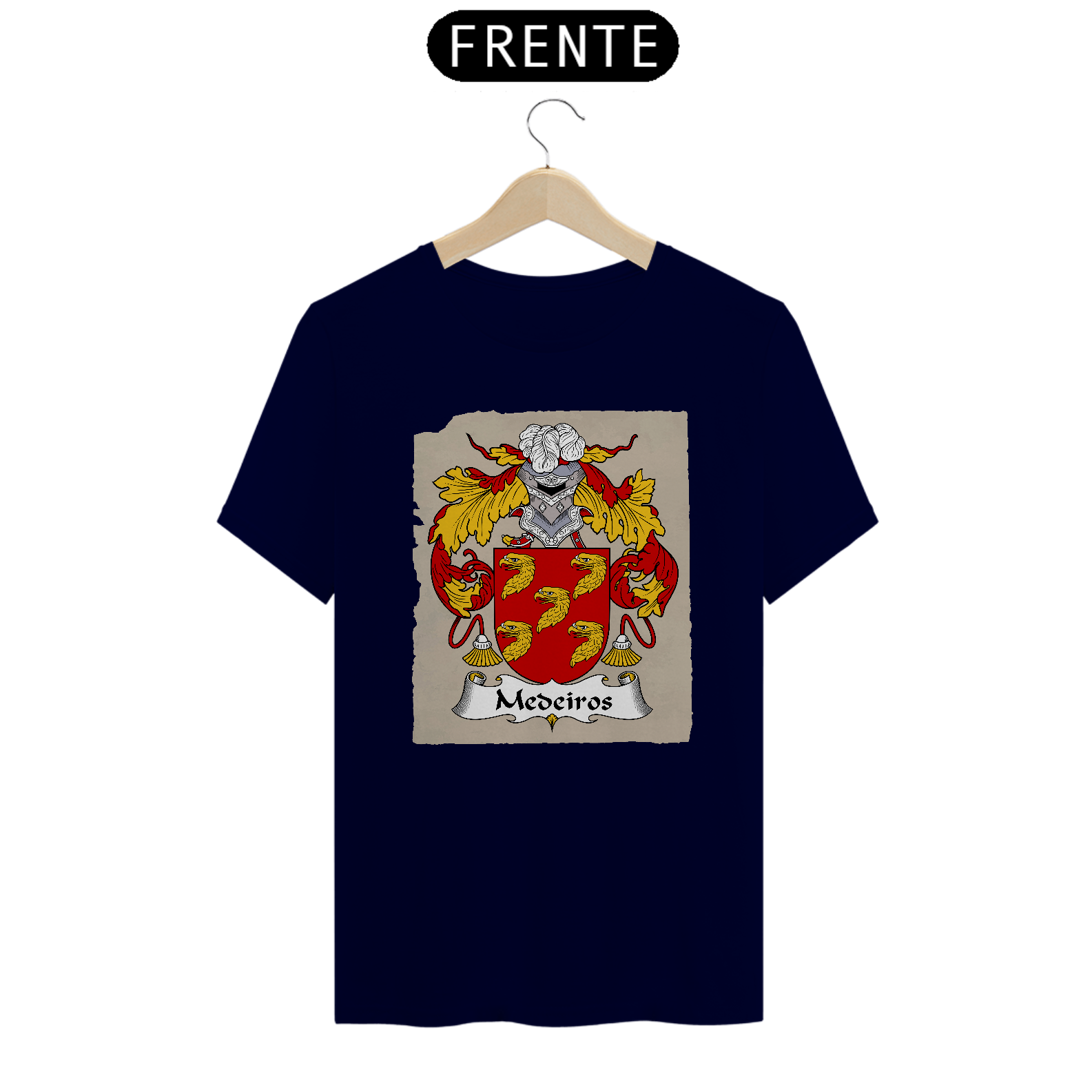 Mostre suas raízes com estilo! A Camiseta Brasão Família Medeiros é perfeita para quem valoriza a história da família e quer carregar consigo um símbolo de honra e pertencimento. Feita com tecido macio, leve e durável, essa peça une conforto e identidade. Ideal para encontros de família, eventos especiais ou para o dia a dia.