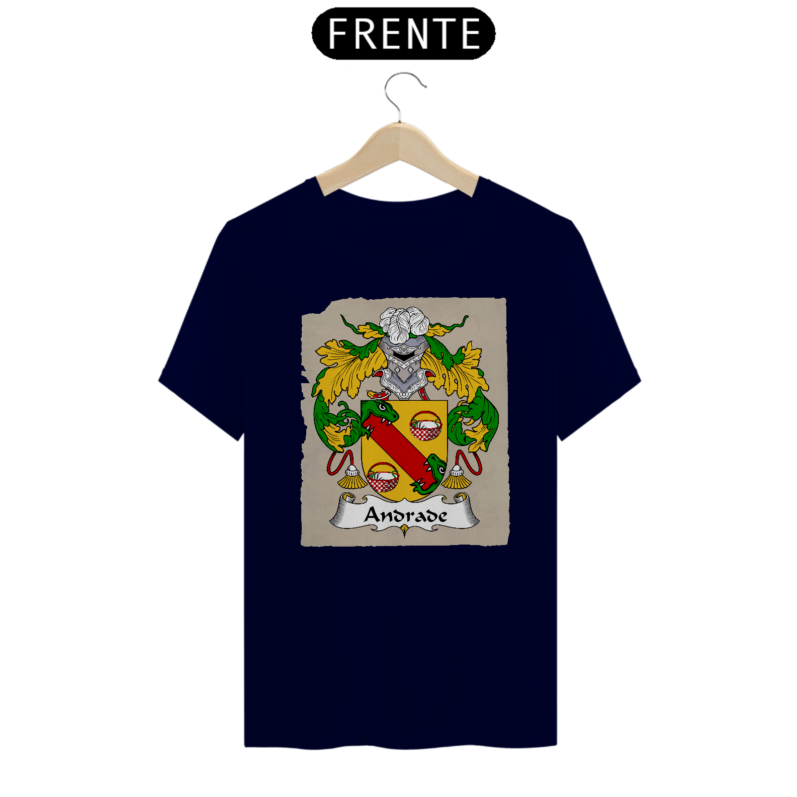 Mostre suas raízes com estilo! A Camiseta Brasão Família Andrade é perfeita para quem valoriza a história da família e quer carregar consigo um símbolo de honra e pertencimento. Feita com tecido macio, leve e durável, essa peça une conforto e identidade. Ideal para encontros de família, eventos especiais ou para o dia a dia com muito orgulho.
